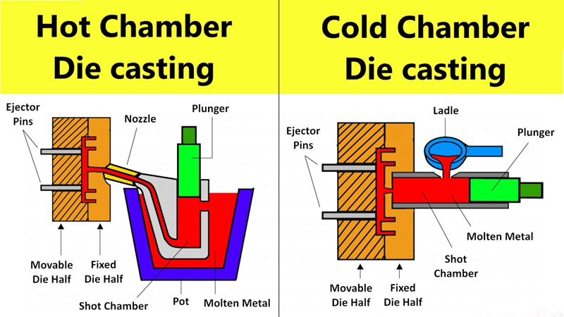 Generally speaking, cold chamber die casting machines are preferred for aluminum alloy die casting, while hot die casting machines are preferred for zinc alloy die casting, which is related to their characteristics and the configuration of the die casting machine.